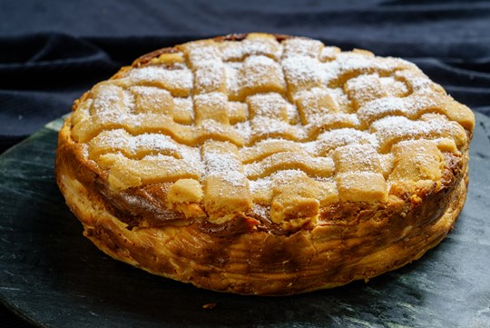 <p>Layered sponge cake, fresh cream, berries and coulis</p>